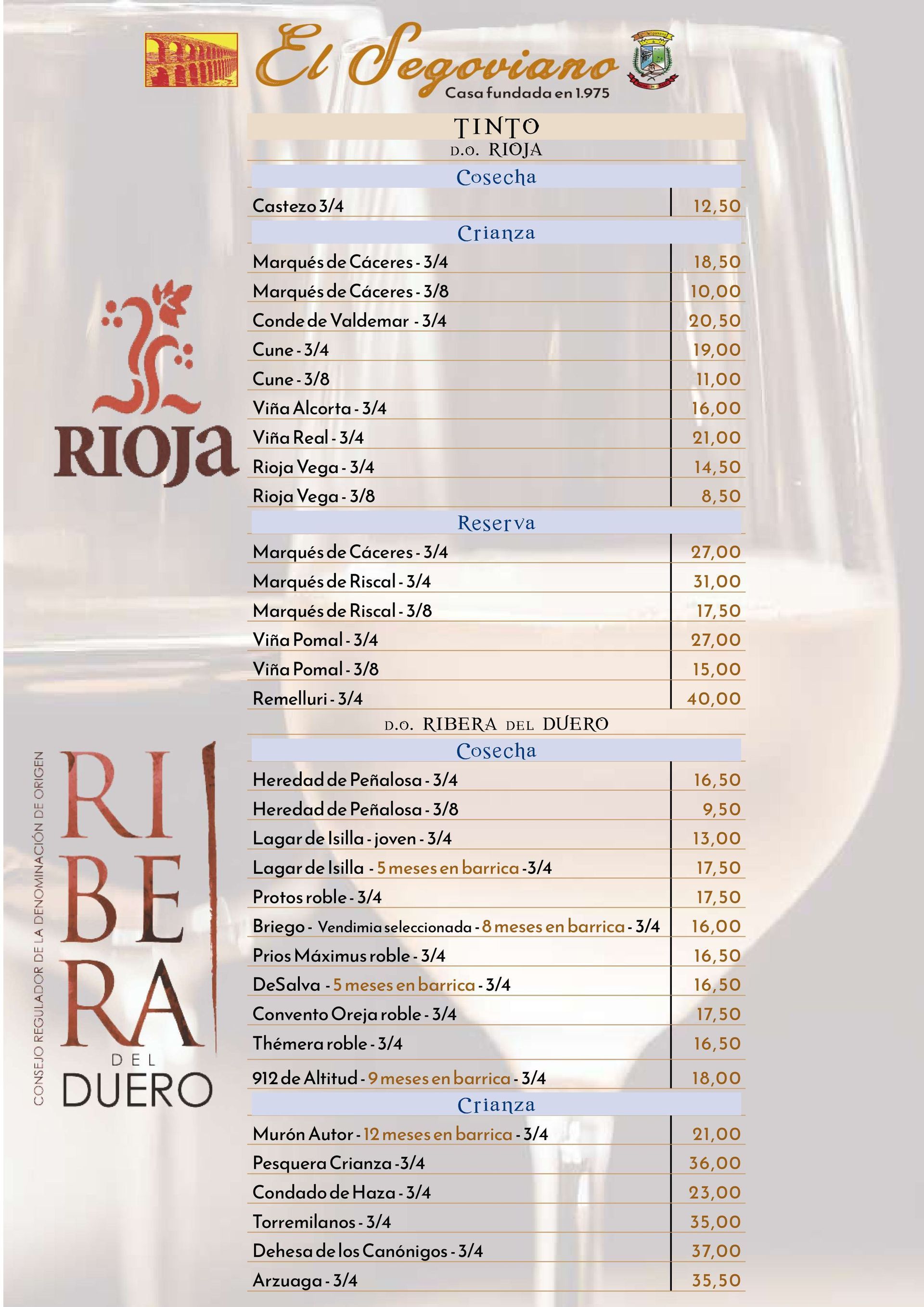CARTA DE VINOS